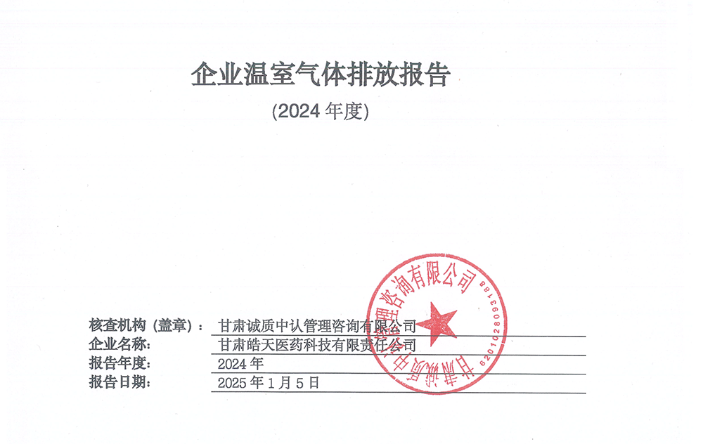 碳足跡核查報告--甘肅皓天醫藥科技有限責任公司